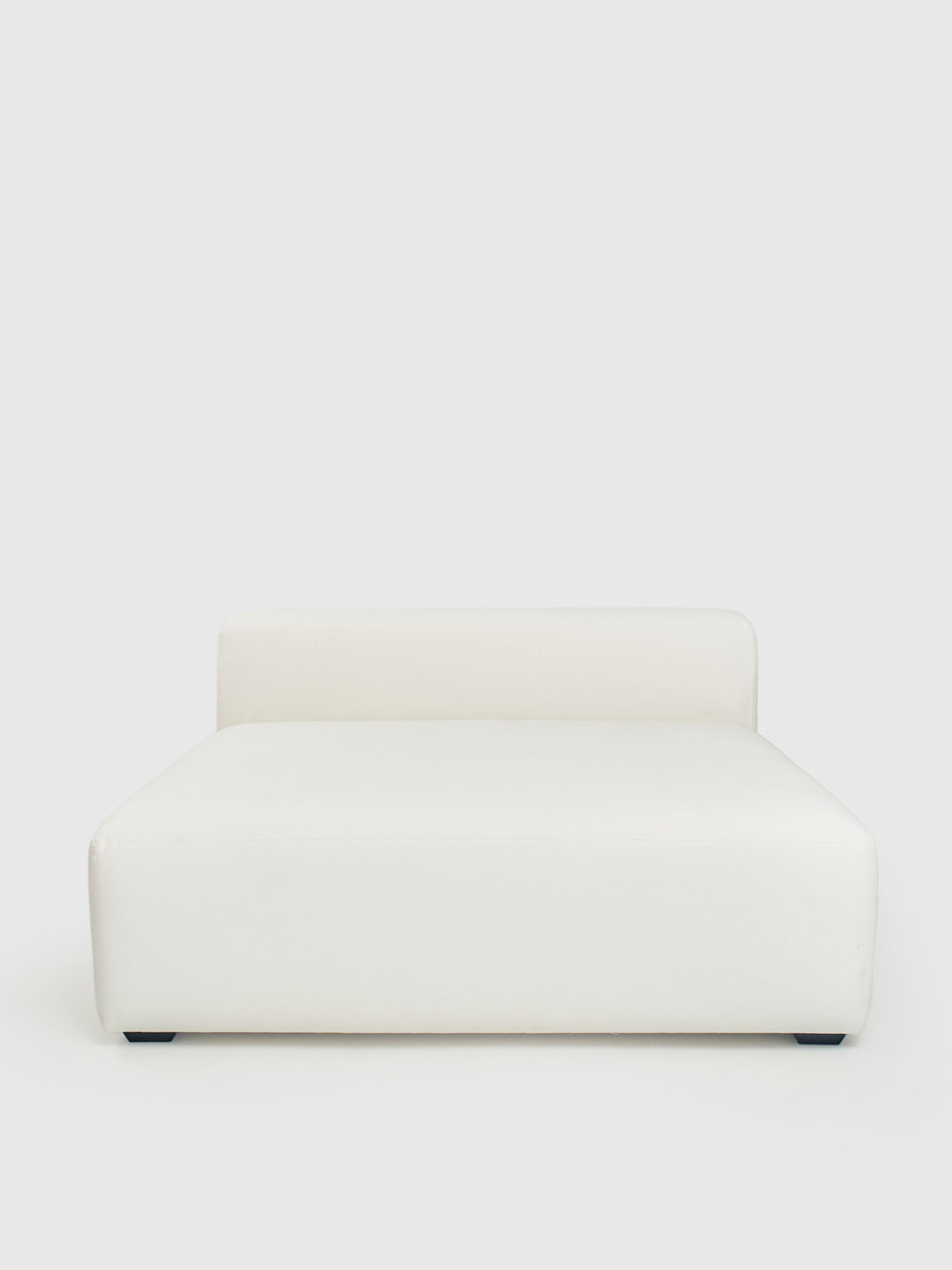 Módulo 140 × 100 rectángulo libre | 140a × 100f × 40h cm. Sin respaldo ni apoyabrazos. Funciona como chaise longue o extensión lateral. |